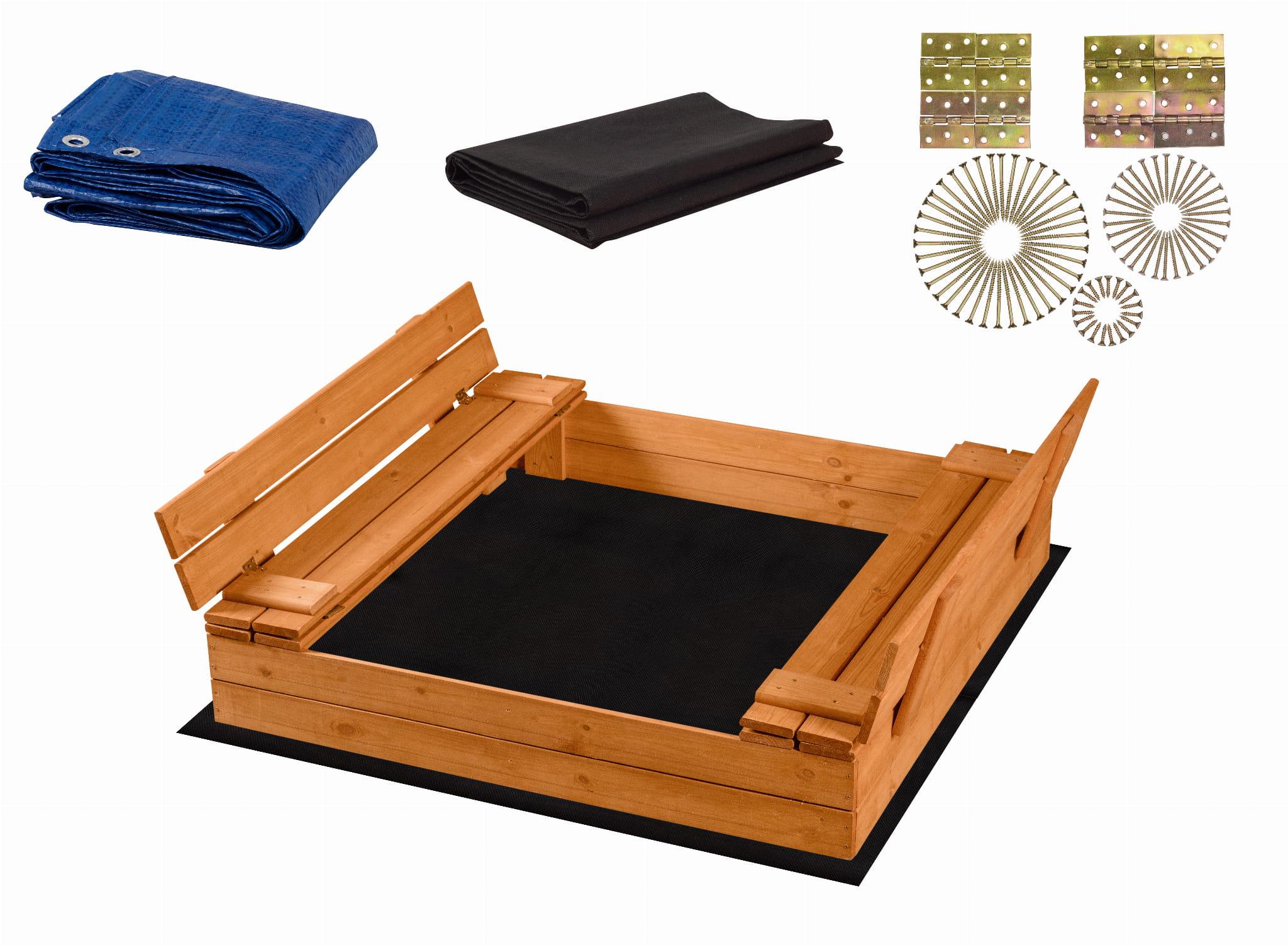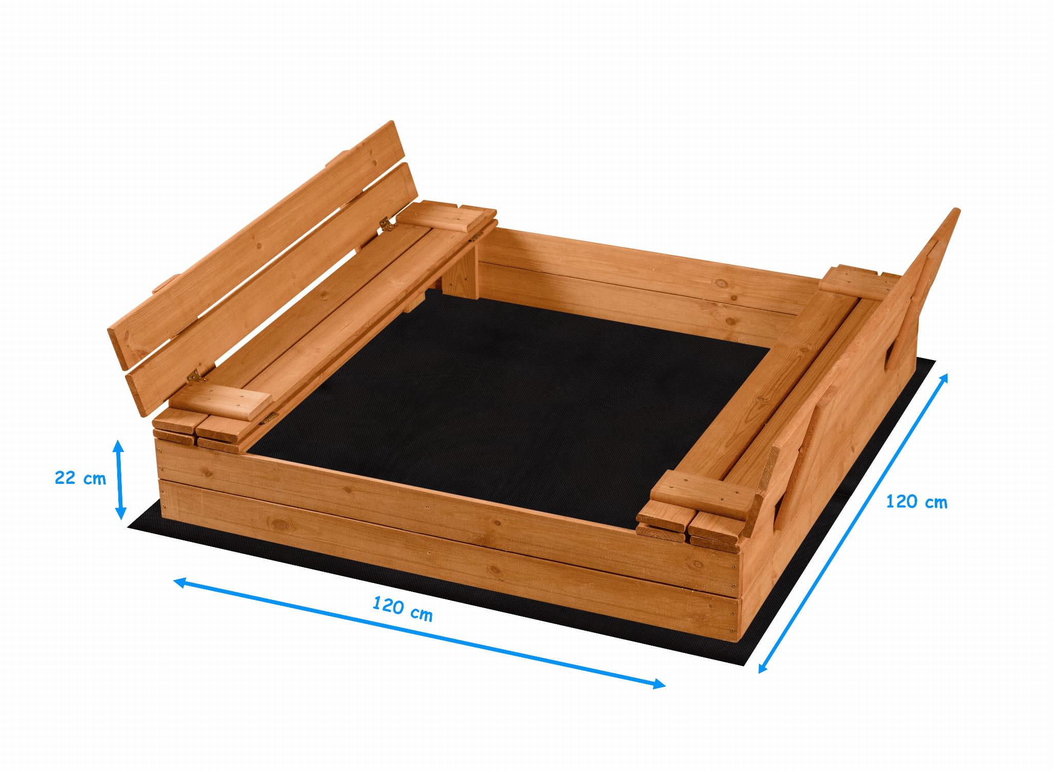 PIASKOWNICA ZAMYKANA Z ŁAWECZKAMI IMPREGNOWANA 120CMx120CM Z DREWNA FSC