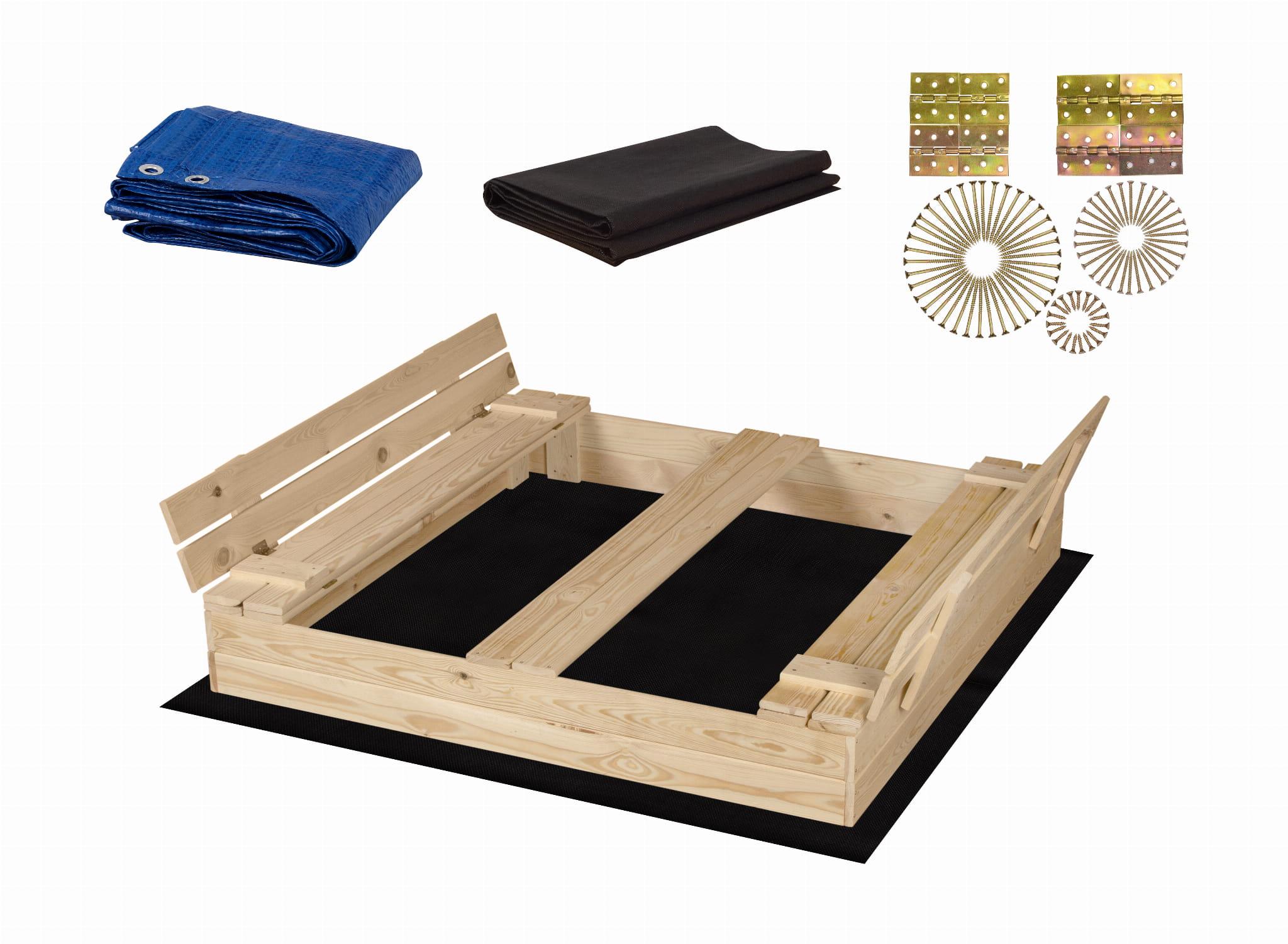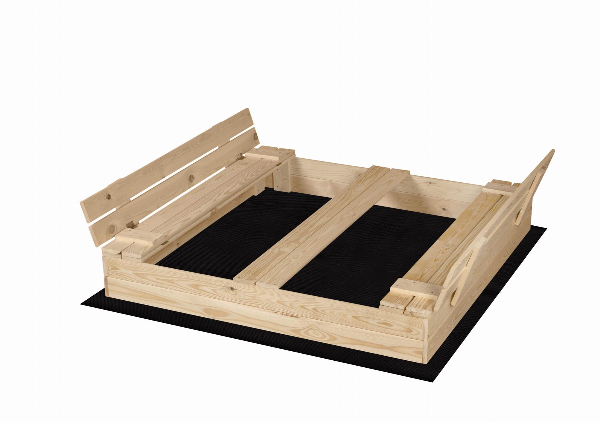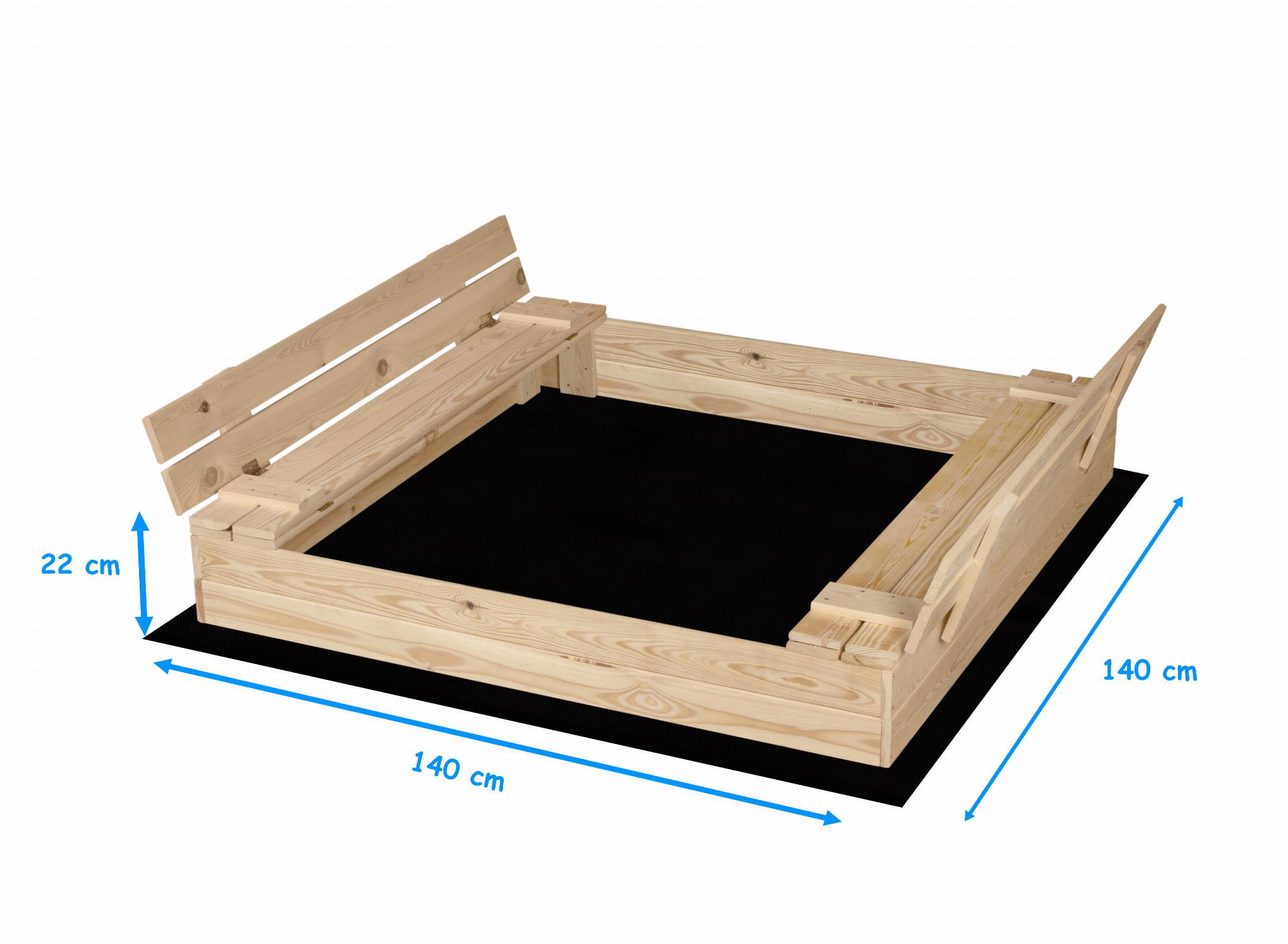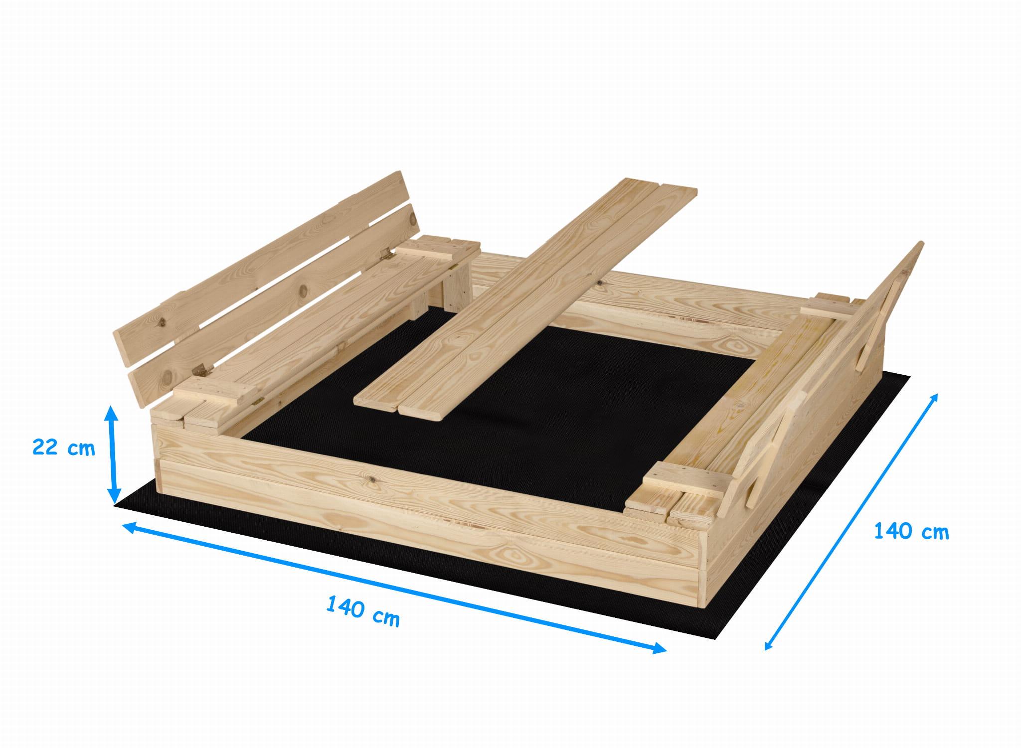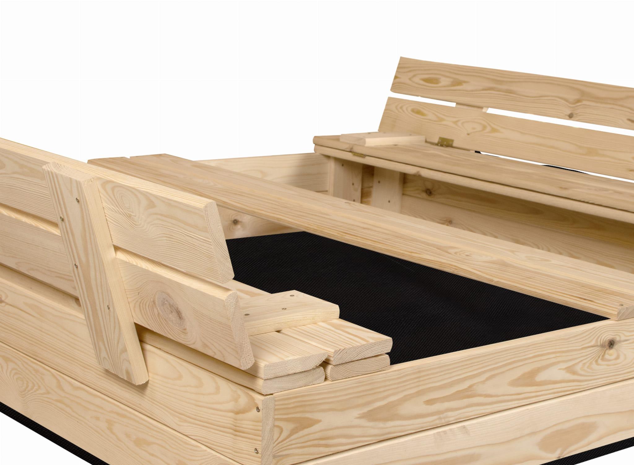 PIASKOWNICA ZAMYKANA Z ŁAWECZKAMI NATURALNA 140CMx140CM Z DREWNA FSC