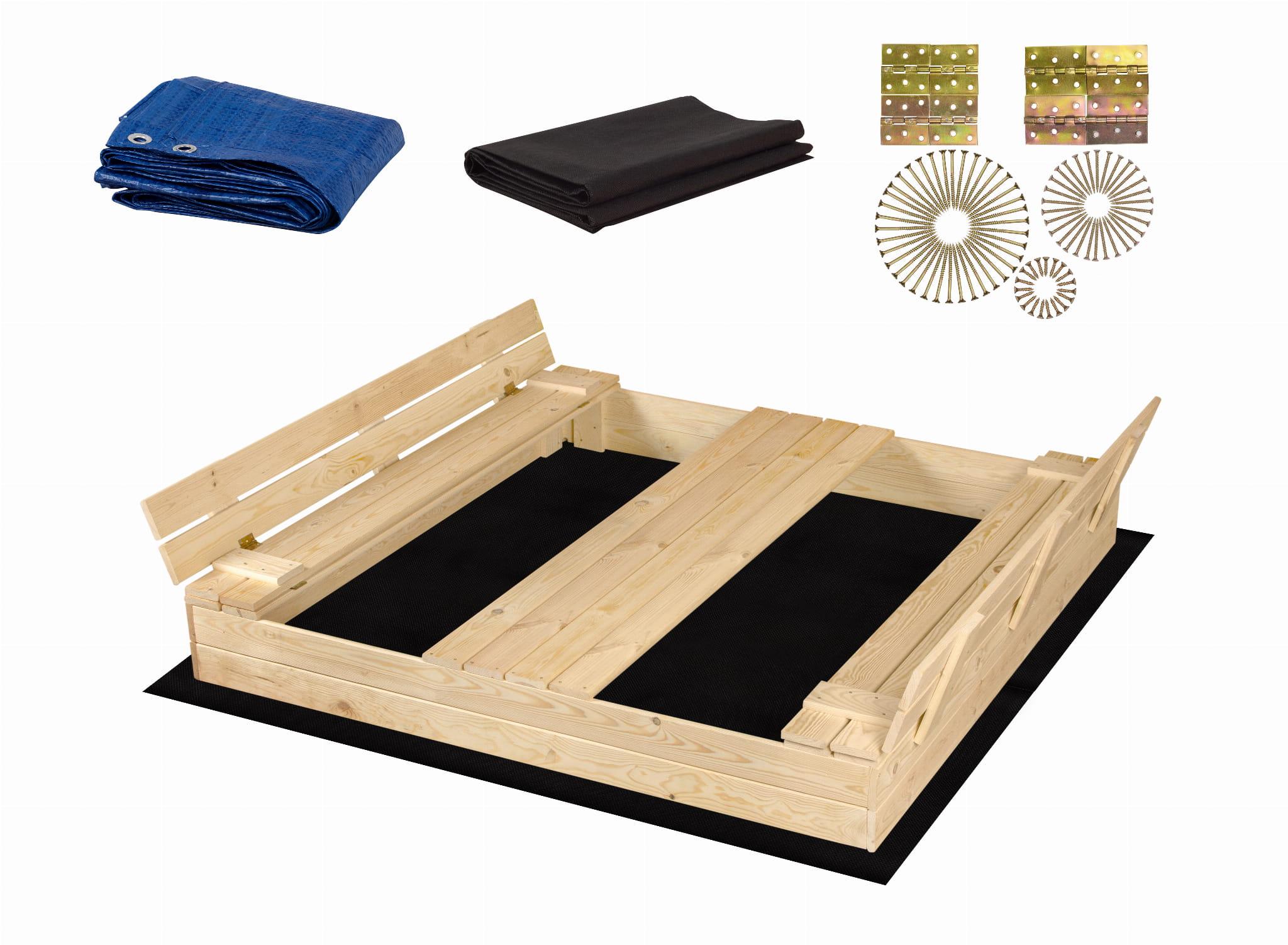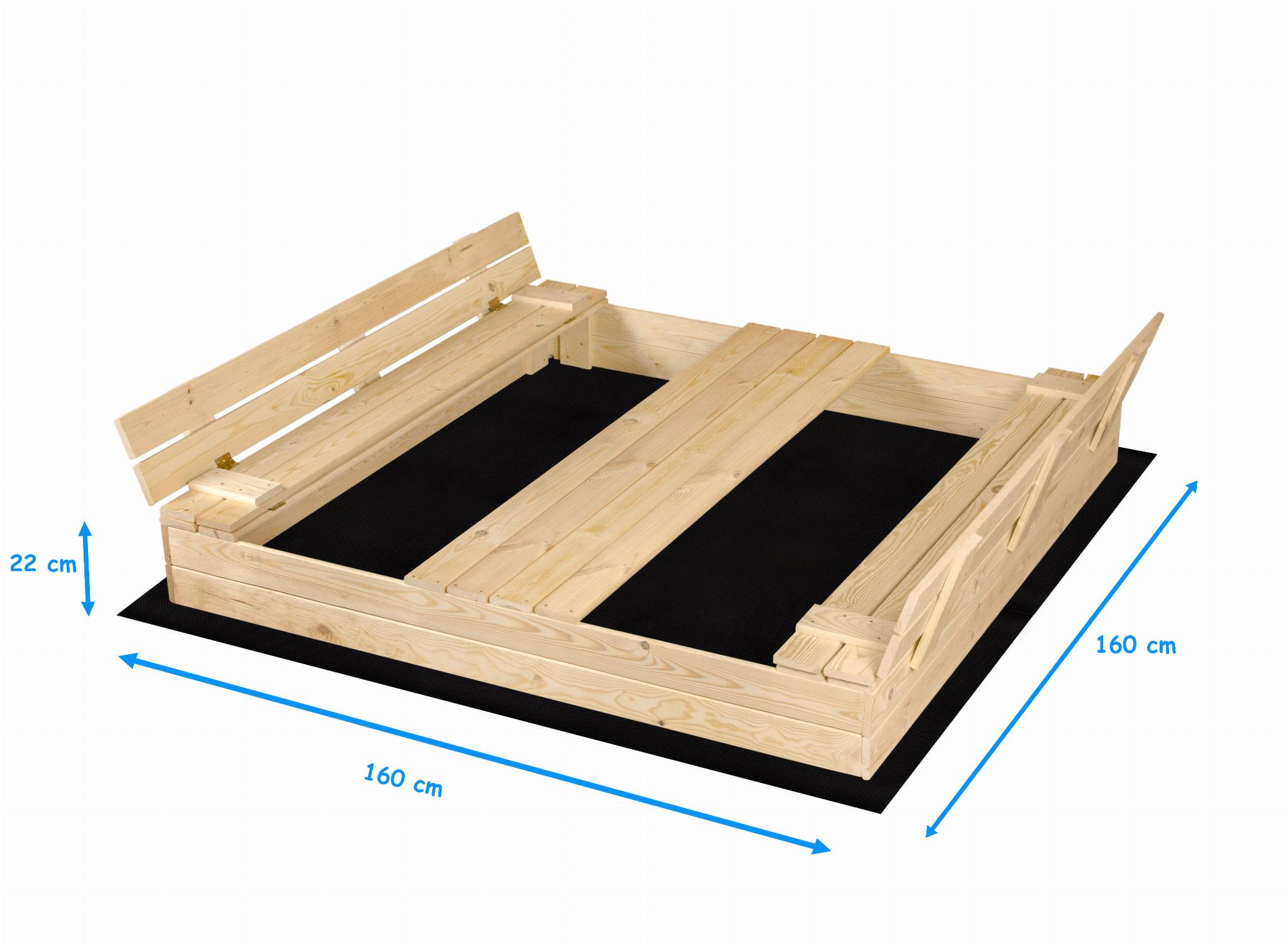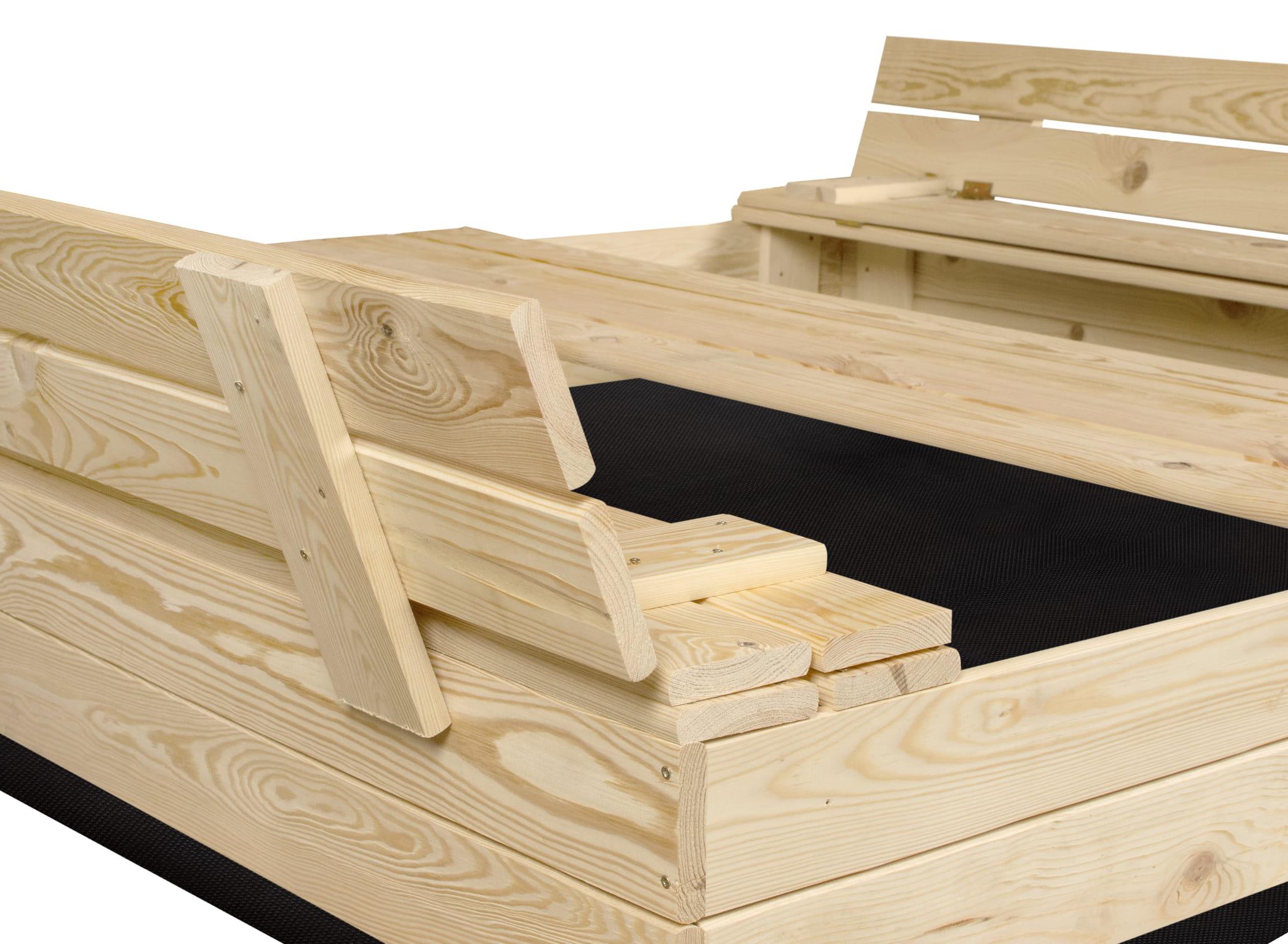 PIASKOWNICA ZAMYKANA Z ŁAWECZKAMI NATURALNA 160CMx160CM Z DREWNA FSC